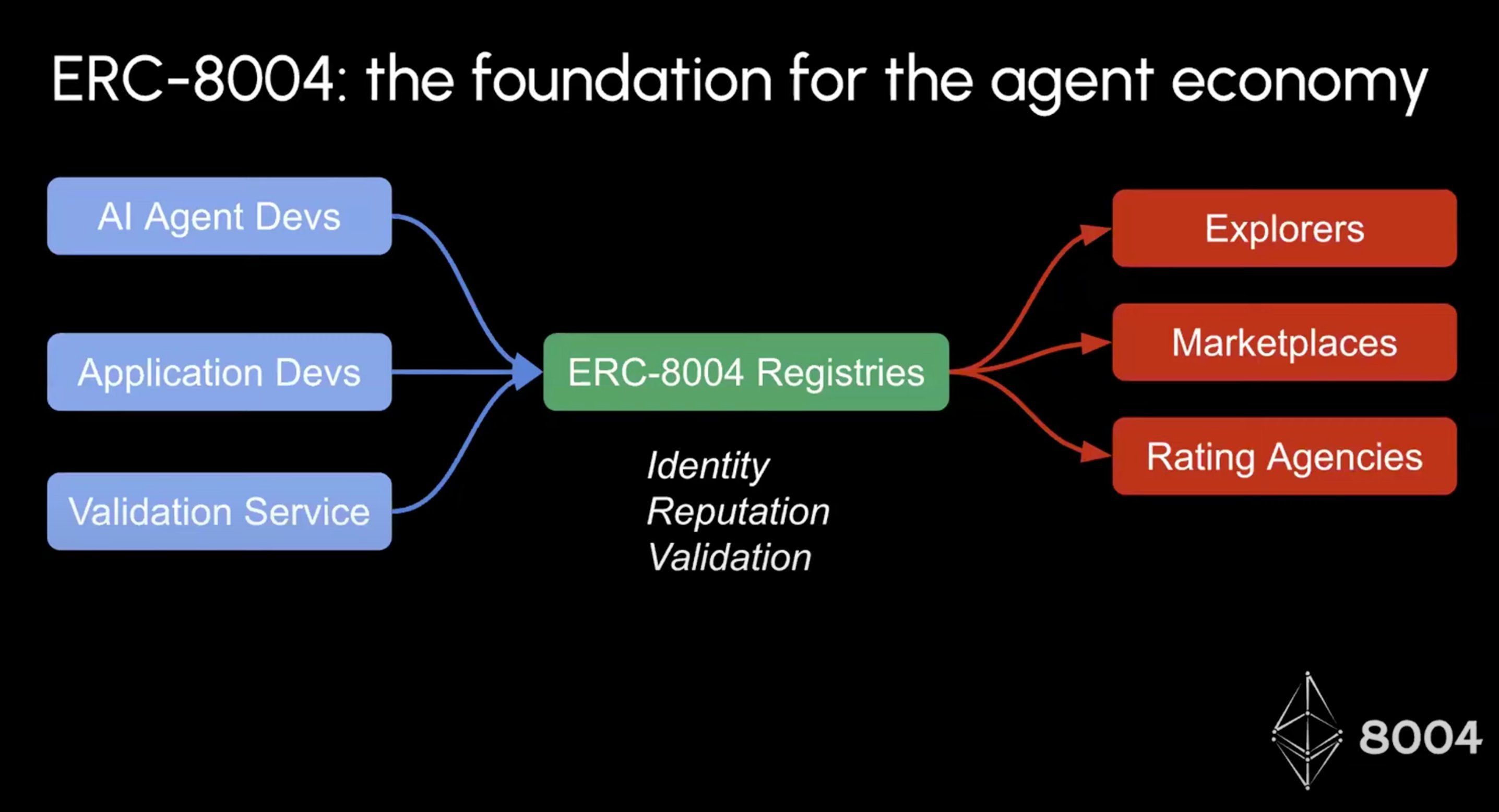 As Davide Crapis, Head of AI at the Ethereum Foundation and co-author of ERC-8004, put it: "Commerce can't happen if people don't trust each other. You can build all these AI agents, but if they can't trust each other then there's not gonna be any commerce."
